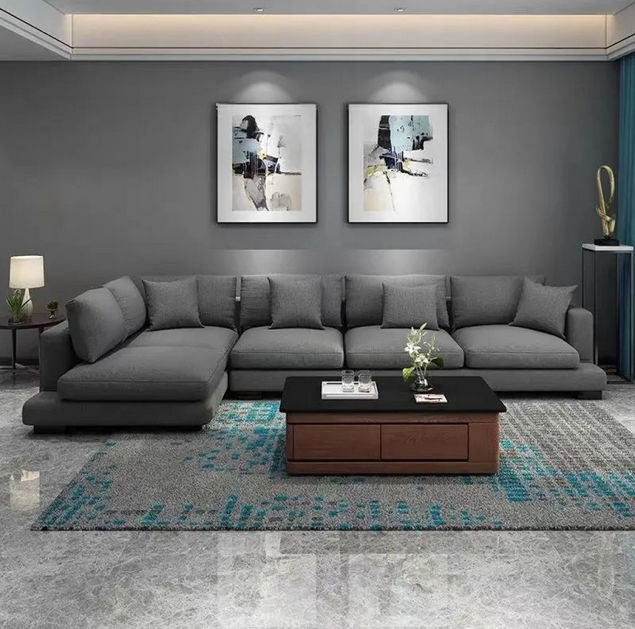 Includes cushions! Enjoy relaxed living with this well-crafted L-shape couch offering deep seating and a durable build. The smooth upholstery adds warmth and style to any room. Customisable fabric and colour options help you match your interior décor effortlessly.